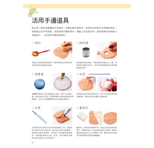 「黏土」一定是你我小時候最愛玩的玩具之一,握在手心的黏土能讓你隨心所欲捏揉形塑,實現想像中的各種奇特造型。但長大後的你,是否遺忘了玩黏土的趣味呢?其實,黏土是最容易上手、多變的手作素材,可以快速又便宜的製作出專屬於你的各種黏土物品。無論小孩、大人,甚至是老人,黏土都能滿足每個人的需求。因為黏土的可塑性實在無人能敵,作品範圍毫無界限,盡其在你。