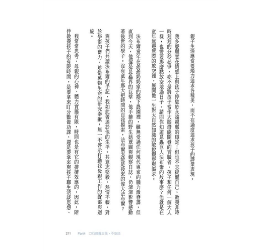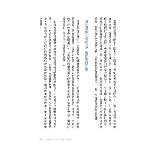 最近娜娜正在苦練舒伯特的奏鳴曲第一樂章,這是一首挺耗費孩子體力的美麗曲子,情感的收放是挑戰,某些樂句在轉調裡隱隱流洩出舒伯特心中的光與暗,像這樣的反覆,使得在廚房做飯的我,邊聆聽邊甚是感動,手忙著炒菜,鼻頭卻濕潤了起來。反覆,不會帶來厭膩,反覆,有時更讓我感悟到一股珍貴的氣息。誰人的日子,不都是在那看起來意義不大的重複裡,躲匿著平凡的好味道。只是,我們常常把日復一日的重複,誤以為是無趣的單調了。類似這樣的誤會,其實會損傷我們帶孩子過生活的眼光。 為了配合孩子的生活節奏,渴望能夠與孩子們同進退於成長的趣味和摸索,這些年來,我的作息已調整到早起早睡的狀態,比孩子們晚睡一點點,這樣可以陪伴休憩的丈夫枕邊夜讀或喝點小酒,我又比孩子們早起一點點,除了做個輕便簡單的飯盒或早餐,也是給自己一點孤獨的空檔,喝杯熱茶、一個人凝視天空中還未殘退的彎月。也許是因為有個晨型人母親作典範,兩個孩子從小就跟著我,養成了規律作息的好習慣。 今日一如往常,我四點五十分起床,天空依然黑濛濛,有一隻孤獨的野貓輕盈地跳上玻璃天井,俯下頭來望了我一眼,喵一聲,就又躍到隔壁鄰居的窗台上。再過一會兒天就要亮,丈夫會先兩眼惺忪地起床洗頭沖澡,然後蜜拉會邊揉眼屎邊跑進廚房跟我說媽咪早安、接著衝進廁所去尿尿,一個大人光溜溜地、一個小孩光屁股,父女倆於焉在廁所裡聊將了起來。最後現身的一定是娜娜。她的第一標準動作,就是蹲坐在樓梯口,來回撫觸著貓咪或拿起一張舊報紙亂讀一通,拿把大梳子慢慢地梳頭髮,等待著爸爸和姊姊終於走出廁所,輪到她使用。 每個早晨,家裡便是如此重複著這般的平安與平靜。不曾發生什麼值得大書特書的動人閃亮片刻。然就是這些太微不足道的重複,構成我幸福生活的根本。 在這個屋簷底下,每天有個女人一大早煮飯、有個男人一大早洗頭洗澡刮鬍子弄頭髮踩腳踏車,有個小孩永遠衝著進廁所去尿尿、還無論如何記住先跟媽媽說聲早(要是蜜拉忘了跟我道早安,我就會用彆腳好笑的英文,從廚房跑去廁所跟她說,「嘿,Sweety, Am I a ghost or air? Do you see me?」你忘了跟我說什麼啦,寶貝?)另一個小孩則永遠慢條斯理爬下床梳髮發呆摸貓讀報,等廁所。這些事情其實沒什麼特別意義可說,但這些事情每天帶給我的幸福感卻太強,使我忍不住想講。 一大早依循著幾十年前媽媽給我的照顧,我甘願進廚房去煮飯,很幸福。我感覺自己因此而捕捉到為家庭奉獻的紀律與滿足。例如今天早上我做了青椒絲蛋炒飯,包裹著蛋液金黃又絲絲翠綠的米粒上,鋪了一片刻意煎酥脆的火腿。食物就是我的語言。 而丈夫一大早起床沐浴淨身,穿得乾淨、帥氣、整齊,準備一天上班的戰鬥。這表示他有工作有收入,有自己在職涯上的努力和肯定。光是有工作這件事,就值得我每天為他高興;千萬別等到丈夫失業了,才醒悟「有工作就是幸福」,這樣好傻,也別等到苦難或疾病降臨了,才回頭觀望那曾經的平凡或健康,原來是珍貴。每天為出門工作的丈夫準備些什麼點心、飲品或水果沙拉,我怎能不樂意。 孩子們每日一早自己準時起床,永遠笑嘻嘻地跟媽媽說早安。這就是我教出來、懂得尊敬長輩的小孩,我很幸福。他們起床後做的每件事,皆意味著他們身體健康、大小肌肉發展良好,不需要我額外操心排泄、飲食、穿衣等問題,我只需要專心把早餐準備好,廚房外的那一大兩小一隻貓,會細細索索地聊天穿衣服彼此催促快快快。他們如此安然規律地過活,我哪能不感謝天。 幸福不是用花多少錢來衡量的。雖然我沒有鐘點管家來幫忙打理上下兩層樓、個性儉省的我也總是不太捨得喝下午茶(雖然美食報導的圖與文,總是如此誘人),每天淘米三菜一湯、清洗流理台、收廚餘、切菜、刷鍋子、又滷又煎又炒地,廚事至少占用掉我兩三個小時,兩個孩子的接送也讓我每天上下坡走路至少兩個鐘頭。(別懷疑,我每天真的快走至少兩小時,而且,包包或手上還拎著沉重的菜、書、筆電。這世界有那麼多人忙著吃點心又減肥,其實只要每天肯多走點路,脂肪是會燃燒的。)這些勞力的工作已占據我日常七八個小時,另外,每天得騰出些時間書寫兩、三千字文章,始能配合各種出版計畫或稿約,所以,我不是一般人們口中所謂好命的太太,我是一個如許多默默的女性一般,扣掉睡眠以外,其餘時間都得不停勞力又勞心的妻子與母親。 雖然,金錢和時間的餘裕,是這麼的少,但因為動不動就覺得「啊,這樣已經很幸福了!」所以,我經常活得很安心、很寬心,少抱怨、少怨懟。 辛苦不算什麼,富裕而不快樂的所在多有,抓到了自己的簡單生活裡,值得感謝丈夫和小孩的一切,建立一套自己的娛樂系統,讀書、看電影、走入大自然、仰望天空、凝視老牆縫的苔癬、欣賞流浪貓的輕靈樣態、一個人走一小段路、行經診所看到裡面人潮洶湧,便想到自己的孩子很幸運暫時躲過流感侵襲、聽到一段感傷的音樂流下眼淚,隨便怎樣都可以使我心情受振奮或浮漾著恩典。 幸福或快樂,不是去求他人要對我好,也不是去求老天爺許我一個環境舒適、幸福或快樂,是要請求自己能夠寬容地看待世人與家人,幸福沒有技術沒有標準沒有比較沒有界限,當我甘願把生活過得實而不華,我終於嘗到了一點點幸福的滋味。 人生是短的,也是苦的,這個體認使我立意要讓