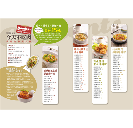 一般人聽到不吃肉,就想到吃素,就會以為不美味。其實「不吃肉」不是茹素,而是建議讀者每週選一天不吃肉,或是每天一餐不吃肉,這樣不僅有助於延緩地球繼續暖化,減少二氧化碳的排放量,更能從其他食材中獲取身體必需的營養。