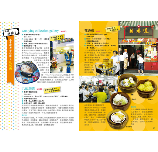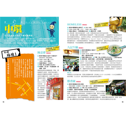 這本書中介紹的餐廳、購物商場和遊樂區,有些是大排長龍不可不去的名店(很多旅遊書都有寫了),但有些則是我自己比較偏愛的特色美食、小店,也許並非盡如每個人的意,但都頗有人情味,讓你能體驗到特殊的香港庶民風情。所以,趕緊安排幾天假期,和三五好友、情侶、家人,展開一場美妙的香港之旅吧!(by本書作者/王郁婷)