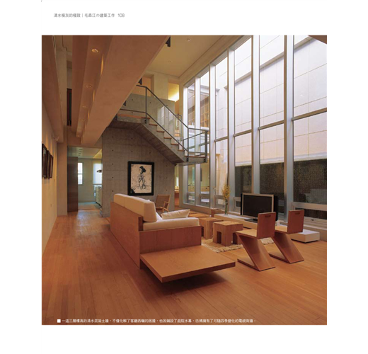1.毛森江狂熱迷戀日本知名的建築大師安藤忠雄的作品,花了兩年多的時間,持續往返日本,學習清水混凝土的施工作法,就像他的偶像安藤忠雄一樣是非學院出身之建築師,毛森江靠著自修練從銷售女裝服飾變成清水混凝土建築達人的一手好功夫。並且因為堅持的住宅主張而成為台灣備受媒體關注的自由建築師,進而廣受大家的喜愛,在台灣各地創造許多精采作品……。