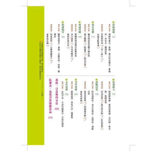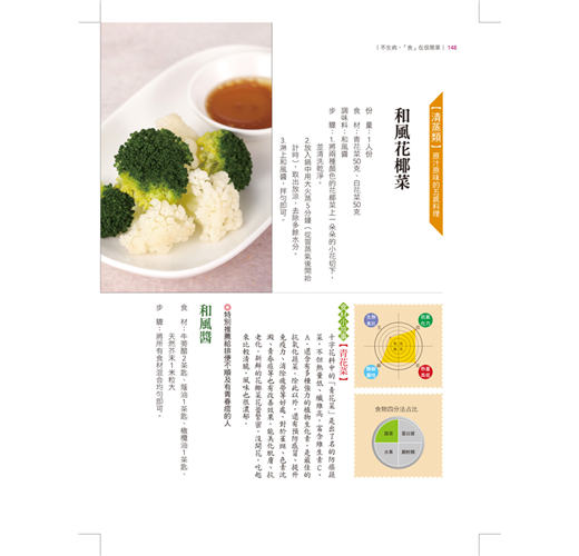 二、70道抗發炎飲食,一般保養或是對症通通適用:書中提供70道兼顧健康和美味的食譜,搭配精美圖片,每道食譜簡化成三個步驟,採取不煎、不烤、不炸、不微波的低溫烹調法,只要短短10分鐘,就能輕鬆上好菜。不管是一般健康或亞健康族,甚至是深受疾病困擾的人,都能吃得沒有負擔。除此之外,若飲食上很難真正落實,書中也告訴你如何善用營養保健品來亡羊補牢。