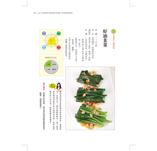 嚀、料理小撇步,都突顯出身為營養師的作者陳怡靜豐富的料理經驗和營養師的專業。像是為了顧及腎臟病患者,尤其是必須限制礦物質攝取的人,要先將菠菜切斷再燙,利用蔬菜的切口讓鉀流失掉等。還有不同季節的替代食材,讓你一年四季都健康!
