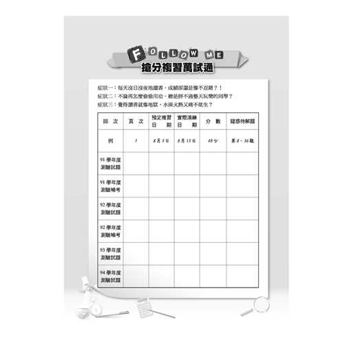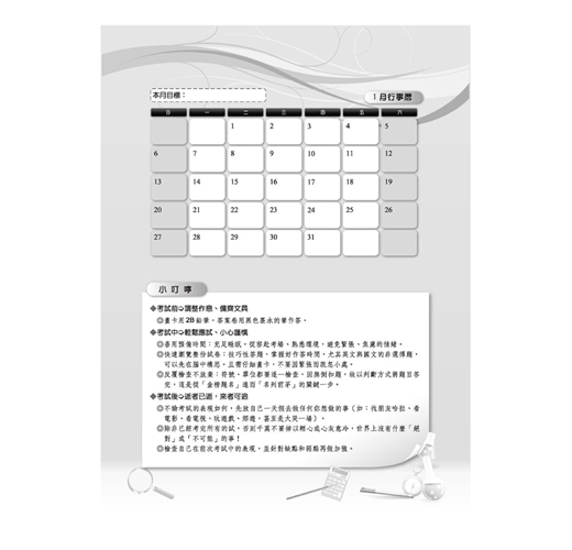 本書系超值收錄學測複習黃金錦囊,跟著編輯群精心規劃的24週攻占滿級分計畫與搶分複習萬試通,攻占大考如虎添翼!