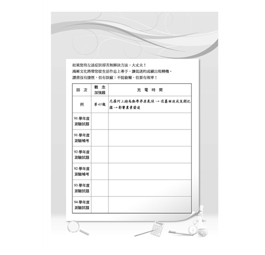 別擔心!鴻漸文化《學科能力測驗歷屆試題總覽》全系列叢書迅速披露最新考情、解析直截切入要點,一帖服下即藥到病除!