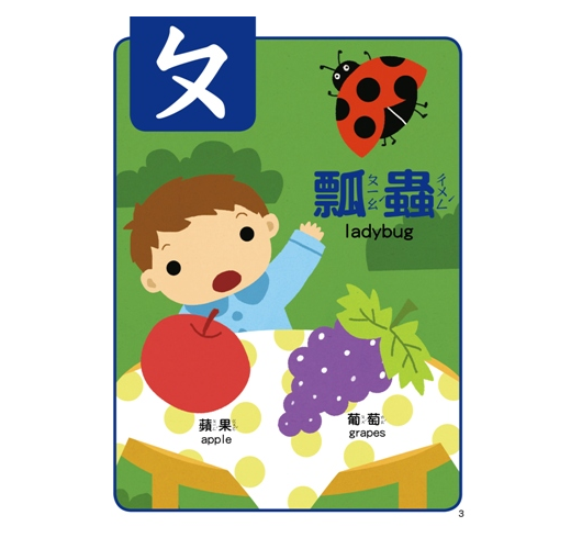 2. 中英文雙語的標示:內附學習書,語詞除了注音標示之外,更有英文對照,讓孩子中英文雙語一起學習。