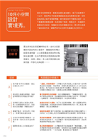 面積不夠就要靠設計力來解決一切需要,全書有30個家庭,面對小坪數常見的101個困擾,以及超過4人以上的家庭使用困難,設計師輪番上陣,所有的問題妥善解決。