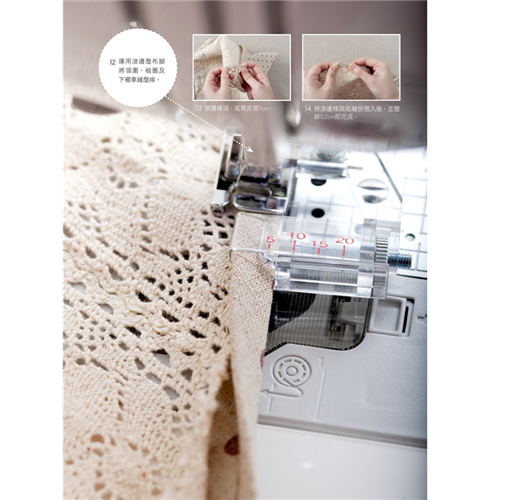 認識了各種壓布腳的特性後,就來實際應用吧!三位資深縫紉老師配合不同壓布腳,依此創作了洋裁、袋物與拼布等作品,不管是隨身肩背包、小巧筆電包、可愛的口金包、實用的便當袋、甜美的短褲、飄逸的短裙、百搭的蕾絲背心、兩件式上衣、綴滿水草與波紋圖案的手提包、彷彿畫作一般的風景提袋……即使是簡單的設計,也能因為壓布腳的點綴而產生不一樣的火花喔!