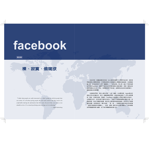 賈伯斯欽點的「矽谷創新精神最佳接班人」——Facebook創辦人馬克‧佐克伯,憑藉他主修心理學的能力,緊抓住「偷窺欲」與「自我表現」的兩大人性樞紐,為Facebook在平台上,頻頻締造各項紀錄: