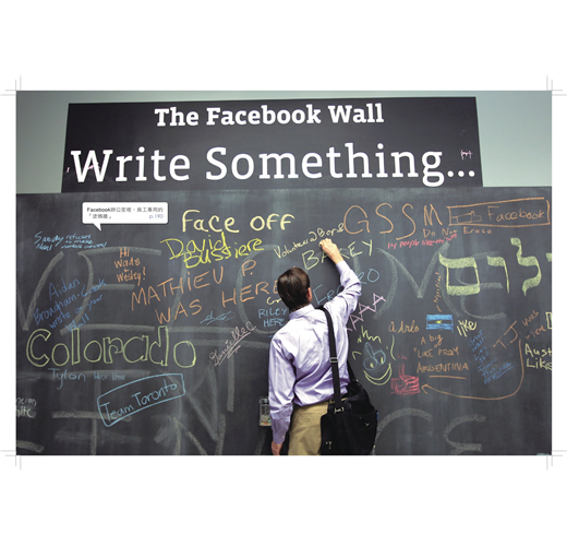 這一雙雙求知若渴的眼神及接續不停的問題,像是一顆顆網路思想炸彈,炸開傳統的行銷結構及實體世界的關係定義。這個讓世人常拿來與賈斯伯做對比的馬克‧佐克伯,正在一步步改變世界的生活方式;Facebook的出現,徹底扭轉了企業的行銷策略。