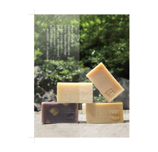 由於阿原對於大自然深深的疼惜,因此肥皂的製作中當然不會使用發泡劑、香精……等那些不當取悅消費者的添加物,因此我們把這樣的精神延伸到包裝概念中,讓這套包裝符合樸素而環保的精神。值得一提的是,我們特別選用本土紙材,一方面呼應本土精神,一方面減少炭足跡。