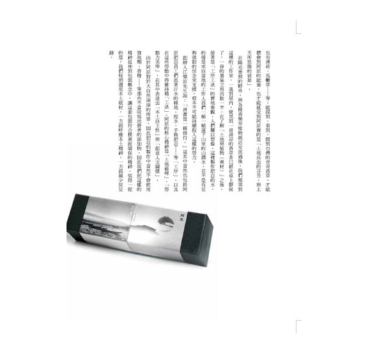 而對我來說,這些生活精品之美,不是在形體、功能上這些看得到的層面,是在之所以製作出它們背後的故事與心力。除了窯燒的過程令人費盡心力外,包裝的設計未能考慮到第一線人員的操作面,也令我著實學到了教訓。譬如我們只思考到設計的簡約、輕便,卻沒想到,櫃檯上銷售員在展示商品時上上下下地取用產品,包裝很快便毀了;此外,我們也沒有想到瓦愣紙的材質雖符合質樸簡約的思維,但卻容易刮傷陶瓷品。身為一位在「包裝項目」得獎無數的設計師,竟然會在自有產品的包裝上跌了一跤,我後來忍痛丟棄所有原來的包裝,重新再來。在這個經驗中,我老老實實地被老天爺上了一課,從此便決定讓自己更為謙卑的看待每一次客戶所託付的責任,哪怕這個任務是一個我已做過千百回合的小案子。