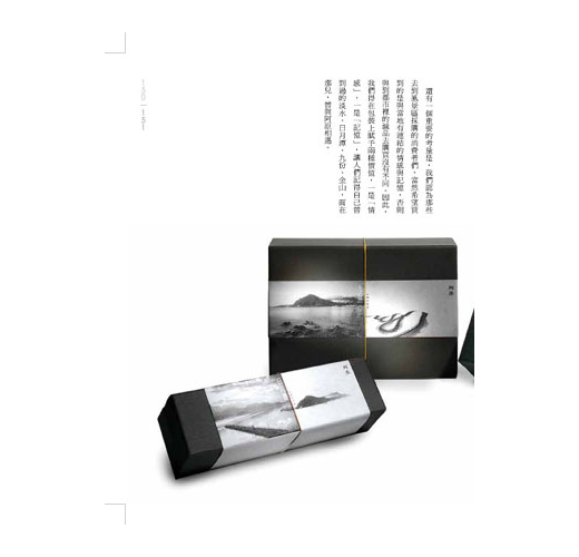 整體造型的極簡優雅風與陰陽調和風延伸到包裝之上,使用以黑為底的陽性色調,搭配陰柔氣質的墨色山形或者紗質提環,仍然是不對稱中的對稱、陰晴圓缺中的圓滿。