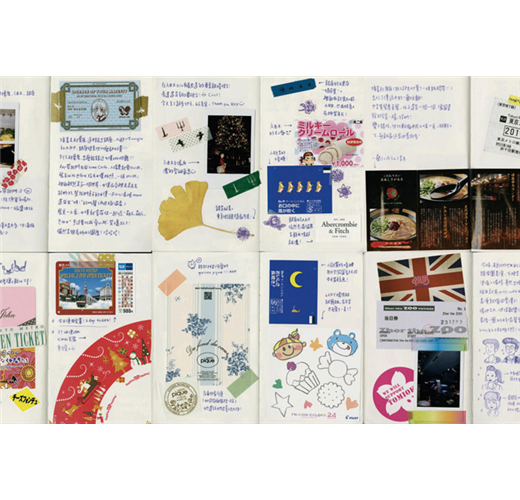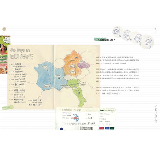變成了一本用各種票根、DM、照片、塗鴉、文字匯集而成的旅遊手帳。