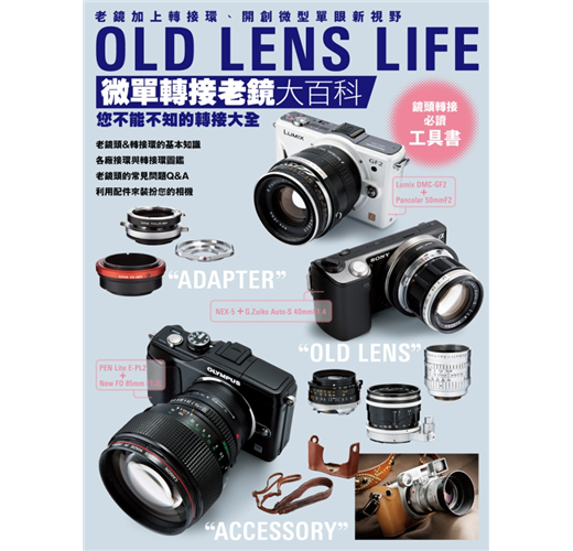 本書從如何選擇相機開始介紹,並且詳列各種老鏡頭的凸緣焦距(法蘭距),讓讀者可以依此選購相機以及轉接環。接下來則介紹各種接環鏡頭的圖鑑以及轉接環,同時也說明使用方法,讓讀者可以面對各種老鏡頭都不會感到困擾。中間並附錄有關於老鏡轉接的各種Q&A,例如:中古鏡頭的買賣注意事項、光圈環的調整、周邊暗角問題、無法對焦到無限遠、防手振的使用方式…等等使用老鏡轉接時經常會遇到的問題,書中也有許多老鏡頭拍攝的範例,讓讀者可以參考各種鏡頭的風味,相信如果您也對老鏡轉接有興趣,本書能夠讓您輕鬆搞定所以有老鏡轉接的問題。