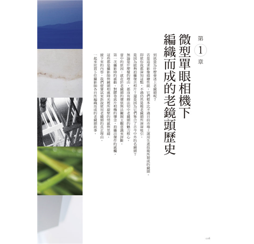 本書教導您使用微型單眼相機來解放這些老鏡頭,透過鏡頭轉接環讓老鏡重生,也讓微型單眼的視野更加的開闊。
