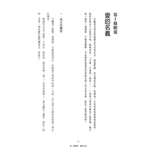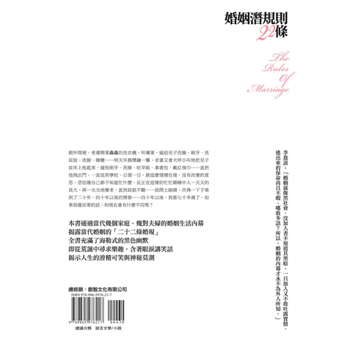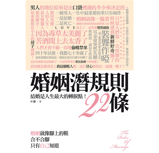 本書通過當代幾個家庭、幾對夫婦的婚姻生活內幕,揭露當代婚姻的「二十二條婚規」。