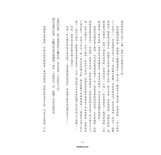 廁所間裡,老婆開著轟轟的洗衣機,叫嚷著,逼迫兒子洗臉、刷牙、洗屁股、洗腳、睡覺……明天早晨鬧鐘一響,老婆又會大呼小叫地把兒子從床上拖起來,逼他刷牙、洗臉、吃早飯、拿書包、戴紅領巾……直把他拽出門,一直送到學校。日復一日,就這麼循環往復,沒有改變的意思。恐怕連自己都不知道忙什麼。反正在這樣的忙忙睡睡中人一天天的長大,再一天天地變老,直到長眠不醒……我閉上眼睛,彷彿一下子看到了二十年、四十年以後的情景──四十年以後,我都七十多歲了,如果我還活著的話,和現在會有什麼不同嗎?