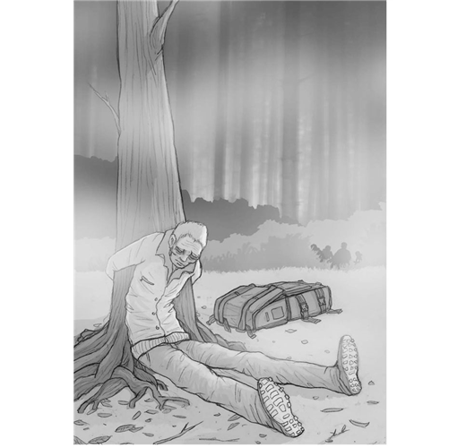 我的雙腿有如被搶匪挾持的車子,失去了控制權。我看準路邊一棵龍眼樹,伸出右手將它緊緊勾住,然而雙腳卻帶著我繞龍眼樹跑一圈,繼續向前衝。