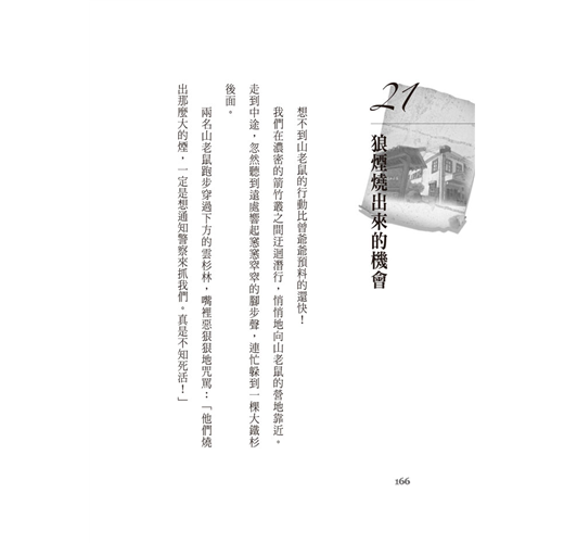 我從床上一躍而起,嚷著:「我要趕快報警去救人,我的同伴被山老鼠抓走了!」