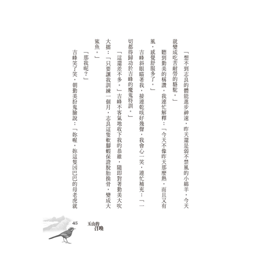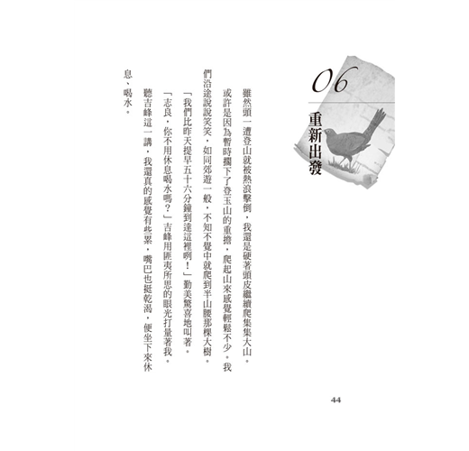 前陣子儀婷來電邀我撰寫地域性的少年冒險小說,我一聽見「玉山」名列其中,驀地想起自己是南投人,從小學就朗朗唱著「玉山高,濁水長……」的南投縣歌。一時鄉情湧動,毫不考慮便選擇玉山為撰寫題材。
