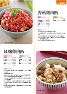 時蔬雜糧菜飯篇:野菇五穀飯、蘆筍菜心雜糧飯、鮮蔬雜糧炊飯…等。