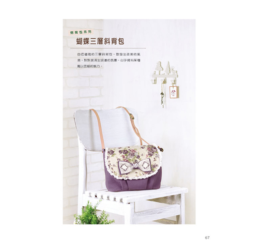 《幸福的生活手作包》是彭莉娟(Alice)的第3本手作包教學書,也可以說是《手作布包的26堂課》、《幸福手作的26堂課》之課後練習本。書中大致可分成小袋物、側背包和後背包等三個主要系列。具有收納功能的零件包、實用的筆袋,以及貼身的中長夾等,看似小巧卻隱含著內斂的生活美學。郵差包、電腦包、保溫袋、單眼相機包以及三層斜背包等,都是貼近生活的創意表現。而各具特色的隨身後背包、OL後背包等,不但給人能夠負重、耐用的安全感,更去除單調、平凡的印象,特別強調實用與美觀兼具的功能設計。除了手作包的教學之外,還有許多袋物製作的「基本技法」,如貼式口袋、直角袋物和夾車拉鍊等等必學招式,可當作袋物製作的技法索引。為了幫助大家更快進入狀況,書中也企劃了「製作須知」和「專有名詞說明」等單元,書末更附有實物大紙型,希望藉此讓有興趣的朋友們能順利完成書中的手作包。