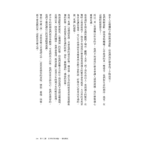 於今,《新編美的曙光》面世,此次新編新版,除了蔣勳對文字的審訂、修潤,編輯上更增加了大量的圖片對照,讓我們在美的「歷史現場」中看望沉思,然後覺察美如何讓我們的「生活現場」感到歡悅豐富,或者熱淚盈眶。