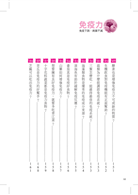 對於早上無法攝取蔬果的人,則應注意如何攝取一些纖維,包含打一杯留下纖維的蔬果汁或泡一杯綜合性的蔬果酵素粉,其實都是不錯的選擇,不過須注意綜合性的蔬果酵素粉的製程是否採用冷凍乾燥的方式,才不會造成營養素的大量流失。術後或癌症復原期的病患,由於多半食欲不佳,可考慮採用胺基酸補充劑,來提升免疫力,不過當您想要使用這些補充劑時,需要透過專業的諮詢,而這些建議和方式也都會在書中一一呈現。有關過敏相關疾病,一直是許多人困擾的問題,包括氣喘、過敏性鼻炎、異位性皮膚炎、類風濕關節炎等,在書中將有詳細的介紹,對於多數人的常見的疑問,在書中也特別說明,希望藉由此書,讓讀者能儘快解決心中的困惑。許多朋友常會聽到許多食療和保健食品,但是很多來源沒有憑據,所以必須透過正確的訊息,才能真正找到安全、有效的食療和保健產品,如此才能真正調整免疫力,而這些相關訊息,將一一整理在本書中,讓讀者可以很快找到自己的需求,重新打造提升免疫力的最佳飲食計畫,也希望相信透過本書的引領,讓您變成親友心目中的「健康達人」。