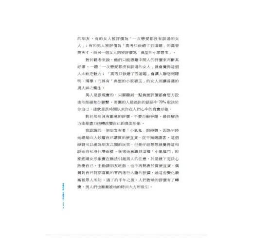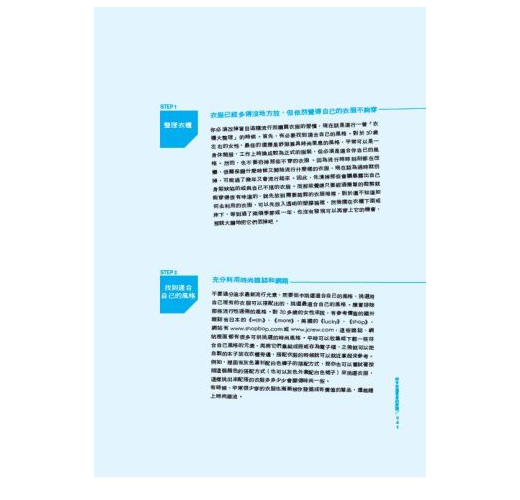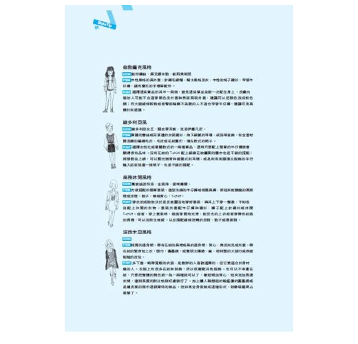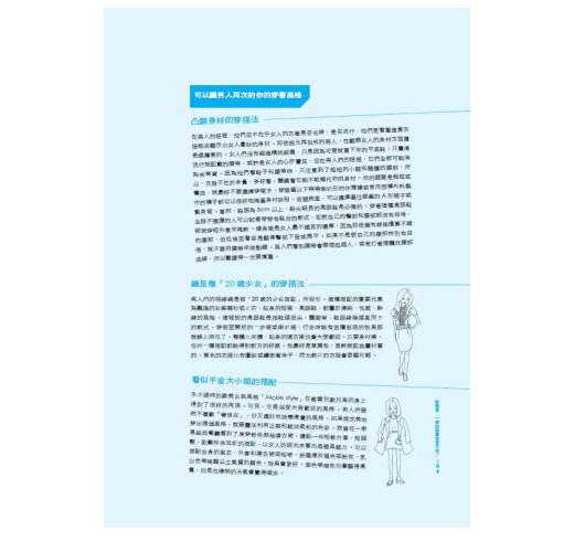 另外,最不能錯過的部分是提升自我魅力的方法。還有作者詳細的穿搭介紹和美容祕訣。