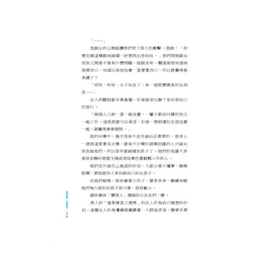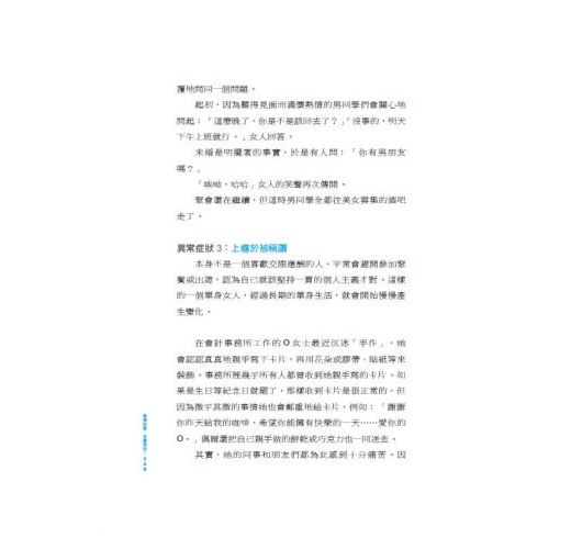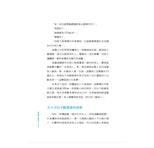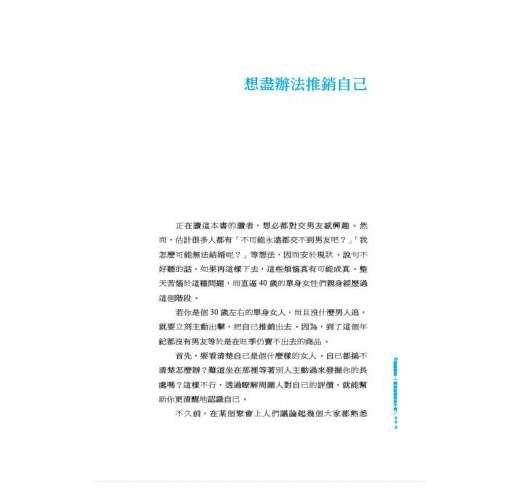 人們會直截了當地問30多歲的單身女人:「有沒有男朋友?」「怎麼會沒有呢?」能被問到這些的人還算是幸運的,還可以假裝自己現在正處於修養期,可以若無其事地回答說:「不久前分手了,過段時間再說吧。」