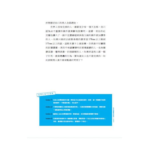 解:那些你看不上的男人也會對妳有同樣的想法,而且會有同樣的抱怨。你以為自己就很不錯嗎?