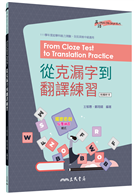 誰說克漏字與翻譯不能一次解決? 本書特色 1. 克漏字測驗主題多達 20 種主題共 30 個單元,每個單元皆有兩篇短篇及一篇長篇測驗, 讓您充分熟悉各式主題,幫助您同時兼顧字句用法及段落主旨。 2. 連貫式翻譯每回提供 3 組練習題目, 2 個重要句型講解、每個題組中所需的關鍵字彙, 透或反覆練習,提昇您翻譯寫作能力。 3. 隨書附有解析本,提供詳實文章的全文翻譯,幫助您確實掌握文章細節脈絡,並學習 相關解題技巧及應答策略。