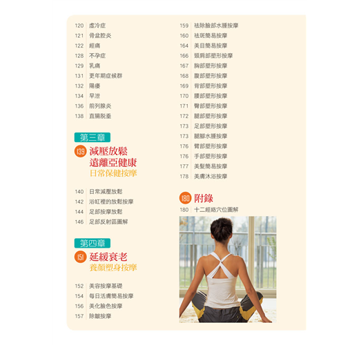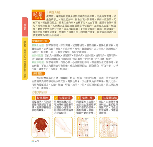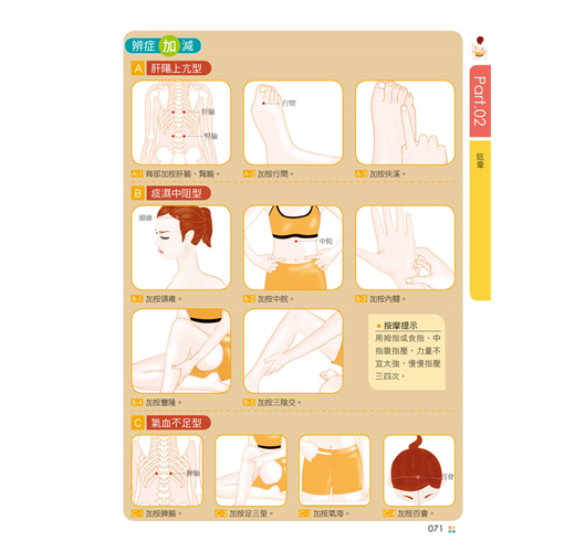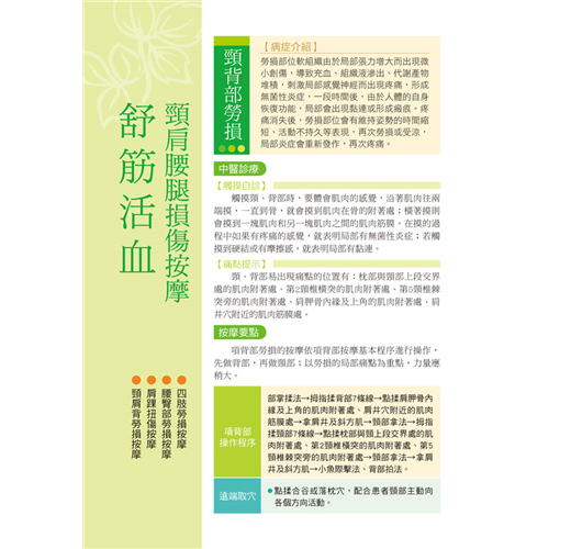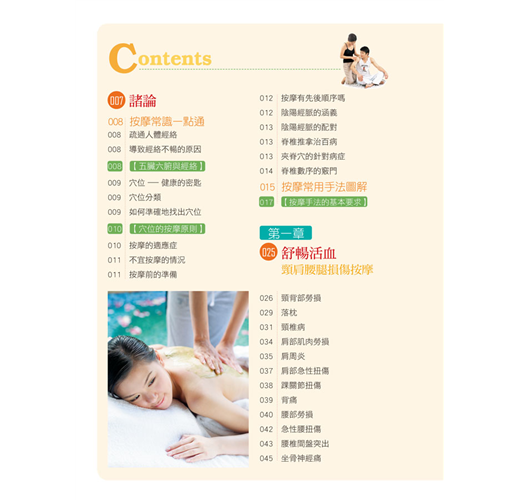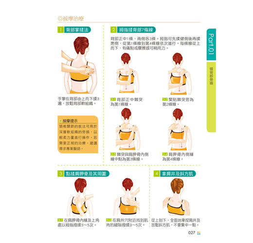 ˙詳細解說各種按摩手法與取穴方式: