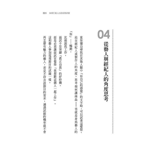 進行面試時,請用經紀人敏銳的觀察力來看「自己」這項商品,思考說話時要從哪個角度切入,才能讓面試官看見自己的好。
