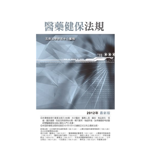 修正法規:醫療法(100.12.21)、醫療機構設置標準(101.1.20)、人體器官移植條例(100.12.21)、醫師法施行細則(100.9.23)、護理人員法(100.12.21)、呼吸治療師法(100.6.15)、藥事法(100.12.7)、罕見疾病醫療補助辦法(100.12.19)、公平交易法(100.11.23)、行政罰法(100.11.23)、專利法(100.12.21)等重要法規。