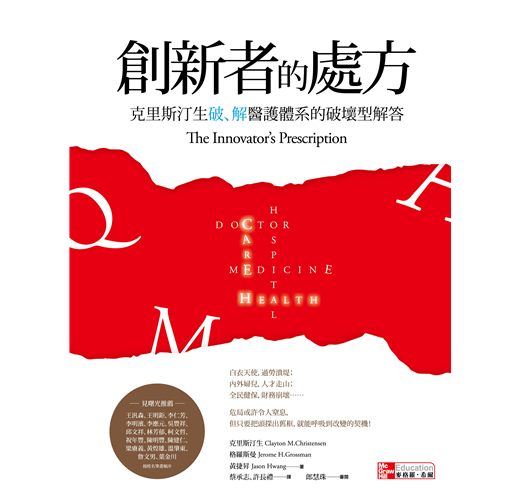 蜚聲國際的「破壞型創新」理論,對於許多產業,尤其是台灣的科技製造業,有非常深遠的影響。提出這個理論的哈佛大學管理學院克里斯汀生教授,連同一位成功的醫師企業家格羅斯曼(長期擔任波士頓知名 Tufts Medical Center 的執行長),以及來自台灣、在美國完成住院醫師訓練的黃捷昇醫師(也是克里斯汀生教授在哈佛商學院的 MBA 學生),三人耗費近 10 年時間共同完成的鉅作:《創新者的處方》,為前述這些醫療照護產業難解的問題,提供了完全不同於過去思維的答案,以及極具創意的解決方法。