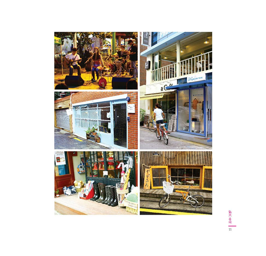走在異國小區梨泰院、漢南洞、東部二村洞、西來村,不論是英式、法式、日式、墨西哥式,感受專屬於首爾的異時尚優雅;或是進入瀰漫懷舊的三清洞、桂洞,並排的老房子彷彿時間靜止了;於延南洞、孝子洞、付岩洞,體驗樸實簡單的在地生活感。或是去品嘗司機大叔推薦的平民美食;倘佯在國際時尚的行道樹街、狎鷗亭,悠閑坐在『歐夏蕾』café,喝杯咖啡是必須的;充滿文創活力、洋溢藝術青春的弘大、大學路,是搜刮設計文具和可愛雜貨的絕佳地點;更別忘了在女孩味十足的梨大,補充最新穿搭流行的衣著。