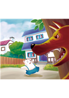 胖比一家人搬到新家了,院子又大又寬敞,胖比玩得好開心。但是,沒想到鄰居家有一隻好兇好兇的大狗,突然跳出來對著他狂吠!大狗張開血盆大口,又尖又利的牙齒閃閃發光,嚇得胖比拔腿就跑……。