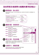 「考前快速記憶法」為本書作者獨家整理的速讀筆記,包含常見字首、字根、字尾表和文法速記表等等,是臨時抱佛腳的最佳選擇。