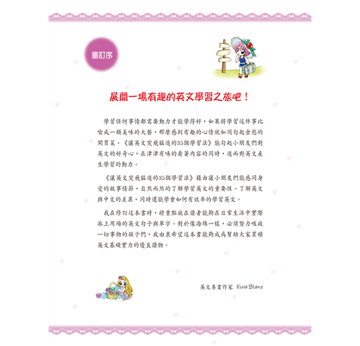 想要學好外語,最重要的是抱持著「這個語言對我來說很重要」的想法,正如書中的主角步瞳一樣,必須找出自己學習英文的理由,有了強烈的學習動機,才能讓自己在學習英文的這條路上孜孜不倦。不要將英文視為一種負擔,而...