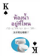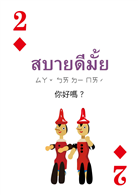 打開撲克牌玩一玩!每張撲克牌都有泰語、中文解釋,加上注音符號輔助發音,讀一讀,泰語一點都不難!