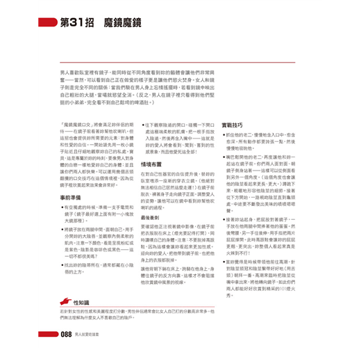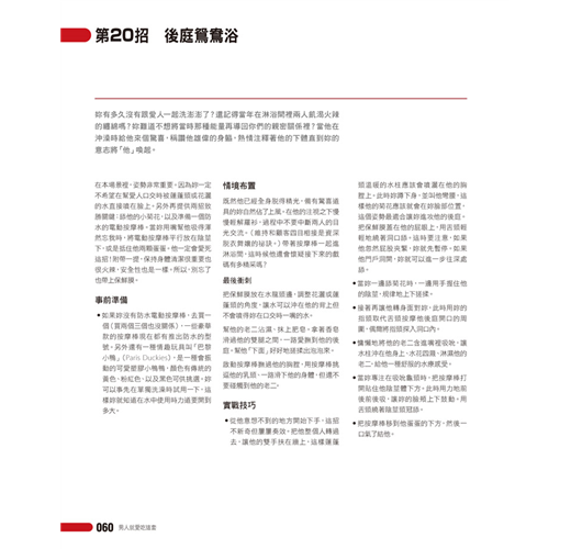 書中並附上性感真人全彩照片以及詳盡的插畫圖示,明確清楚地教導妳掌握他的性感熱點,並表現得專門熟練。有了這本書,妳將成為他身體的最佳主宰。