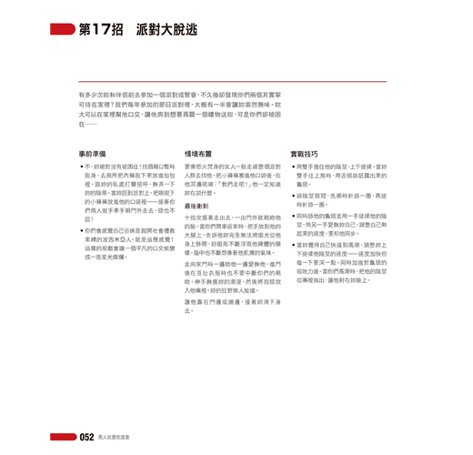 本書並提供52種獨家口交場景妙招,教妳如何開始、如何結束。妳將學習到結合身體姿勢、口部動作、手部愛撫、情趣用品、調戲、以及情境擺設的訣竅,來創造出最終極、最銷魂的口交性經驗。何不給妳的愛人一點新鮮刺激的驚喜,例如: