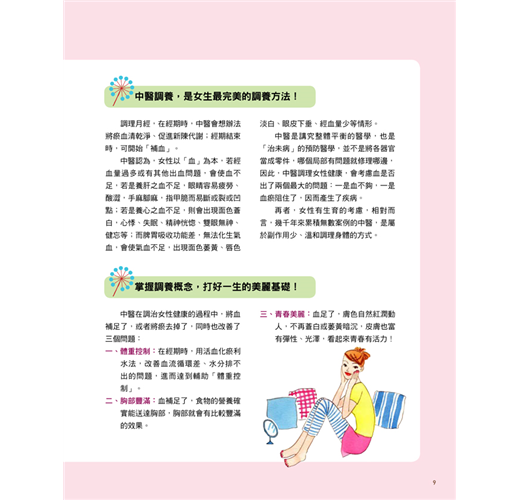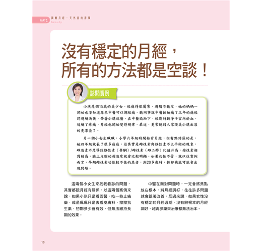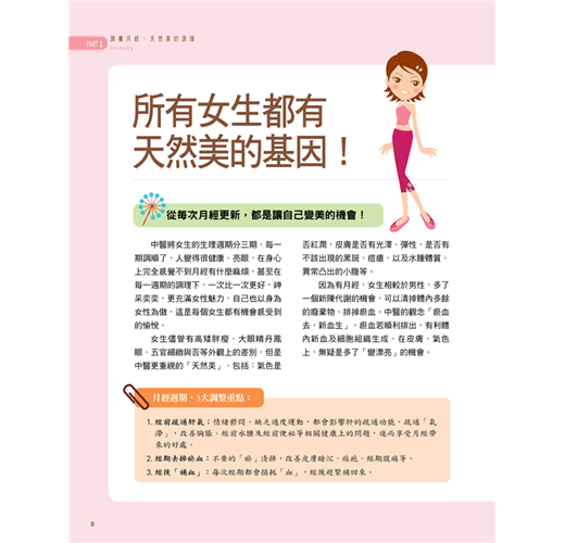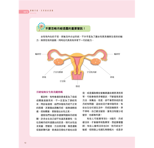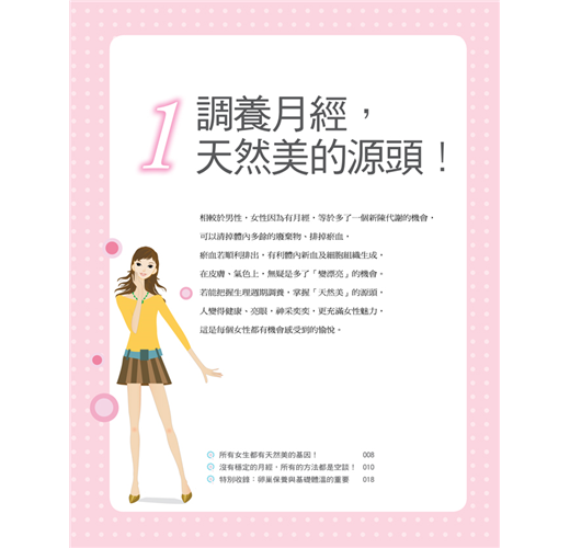 如同本書開宗明義所言,「調養月經,掌握天然美的源頭」,衷心推薦本書給每位女性,希望妳也可以自己掌握美麗的源頭,維持健康、漂亮的女性風采。