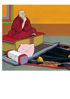 原來,小老鼠一直對老喇嘛的家貓感到很懼怕,因此牠希望老喇嘛能夠把牠變得比貓還強壯,這樣牠就不會再害怕貓了。老喇嘛沉思之後,決定幫小老鼠達成心願,於是,小老鼠就搖身一變成為一隻漂亮的大灰狗。可是沒想到,這隻小老鼠變成的大灰狗,一瞥見那隻家貓,卻還是被嚇壞了,趕緊躲回老喇嘛的房裡。