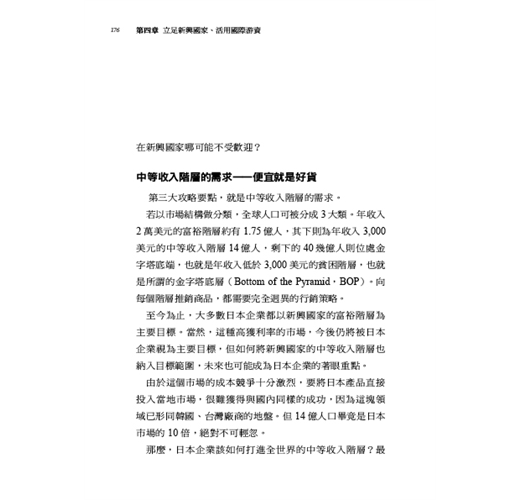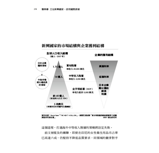 但在日本為該進軍美國還是中國左右為難的當頭,全球經濟已經產生了巨大變化。世界已經有了新貌——一幅由衰退的美、日,與崛起的新興國家所構成的新世界地圖——而僅有極少數的日本人充分意識到這點。