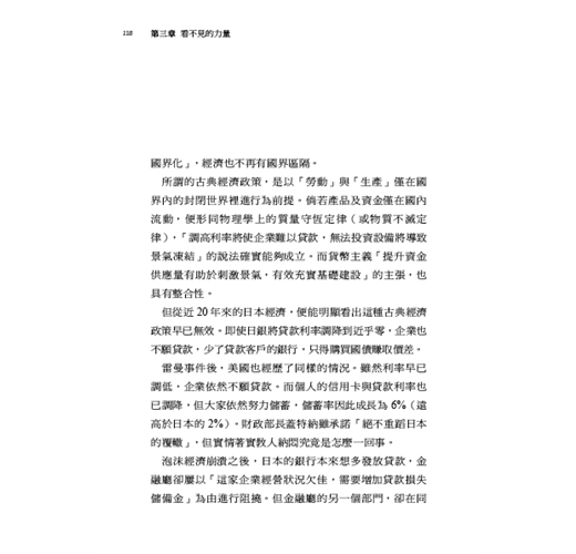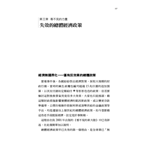 第二,全球經濟已經無國界化,採用傳統的貨幣理論與經濟政策,無法產生提振經濟的效益。大前研一指出,日本面臨失落的20年,即使採用零利率政策也無法帶動經濟成長,甚至產生通貨緊縮。面臨全球貿易邊界逐漸消失,網路時代來臨,更講求低庫存、及時化反應,加上資金流動無國界,波動性增加。這些不同於以往的大環境改變,讓過去政府最常採用的貨幣寬鬆政策、稅負政策,愈來愈難發揮刺激經濟的效果。