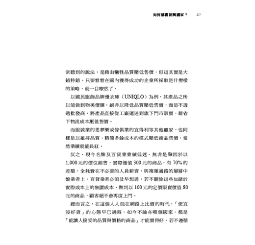 我長期觀察國際投資市場,金磚四國在2003年到2007年呈現高速飆車,但2008年到2012年則面臨失速的痛苦,拚命踩剎車抑制通膨,因此,近幾年投資新興市場的投資人,也同樣面臨上沖下洗的震撼教育。但從大前研一的書中,也再次應證,新興市場將是未來成長的明日之星,只是我們要有更大的耐性,等待他「轉大人」。