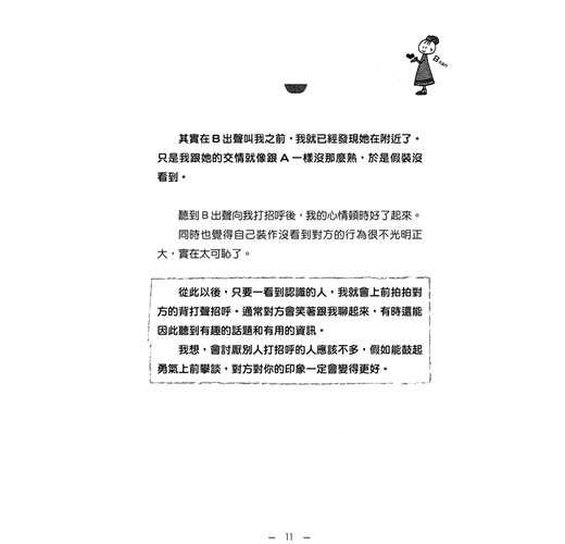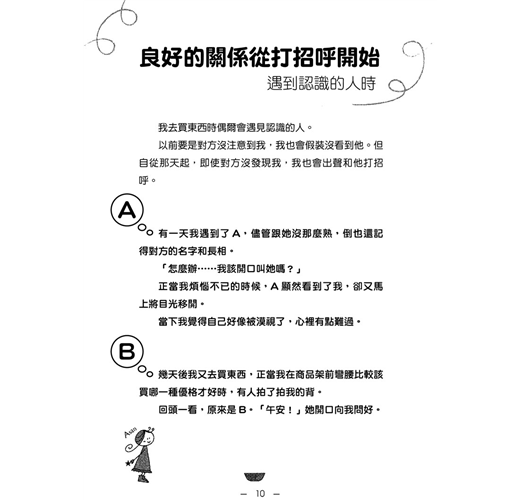 即便面對相同的狀況,對象不同當然反應也會不一,究竟什麼樣的反應才是最好的應對方式?才能藉此拓展人際關係、博得好人緣?本書以生活中真實發生的事件為例,透過A、B兩人互相對照,一一點出一般人平常在交友、職場與感情生活容易忽略的細節,只要稍加留意,多點細心與關心,一定可以因此提升好感度